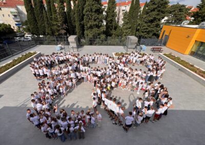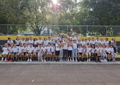 Tradicionalno smo svi bili u bijelim majicama i zajedno stvorili prekrasnu fotografiju u obliku Olimpijskih krugova – simbol sporta, prijateljstva i timskog duha. Zajedno smo slavili prijateljstvo, zajedništvo i važnost sporta u svakodnevnom životu!