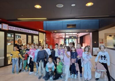 Gretina i Lukasova baka, gđa Mira, srdačno nas je dočekala i upoznala s važnošću štednje. Provela nas je kroz cijelu poslovnicu, pokazala sefove, objasnila kako koristiti bankomat za uplatu i isplatu novca te nam pokazala aparat koji uplaćuje kovanice na račun.