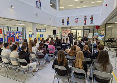 Učenici osmih razreda imali su priliku poslušati predavanje dubrovačkog branitelja Tea Andrića, dragovoljca Domovinskog rata i predsjednika Podružnice UDVDR Dubrovačko-neretvanske županije Mija Vukušića koji su s njima podijelili svoja iskustva iz Domovinskog rata i obrane našega Grada.
