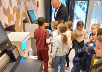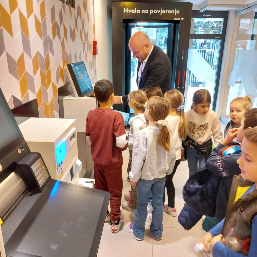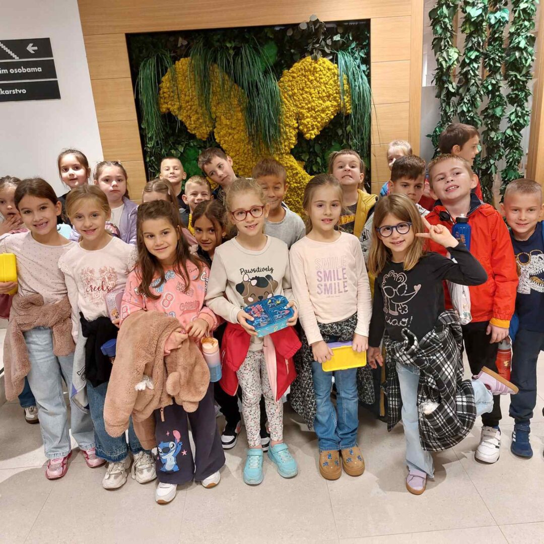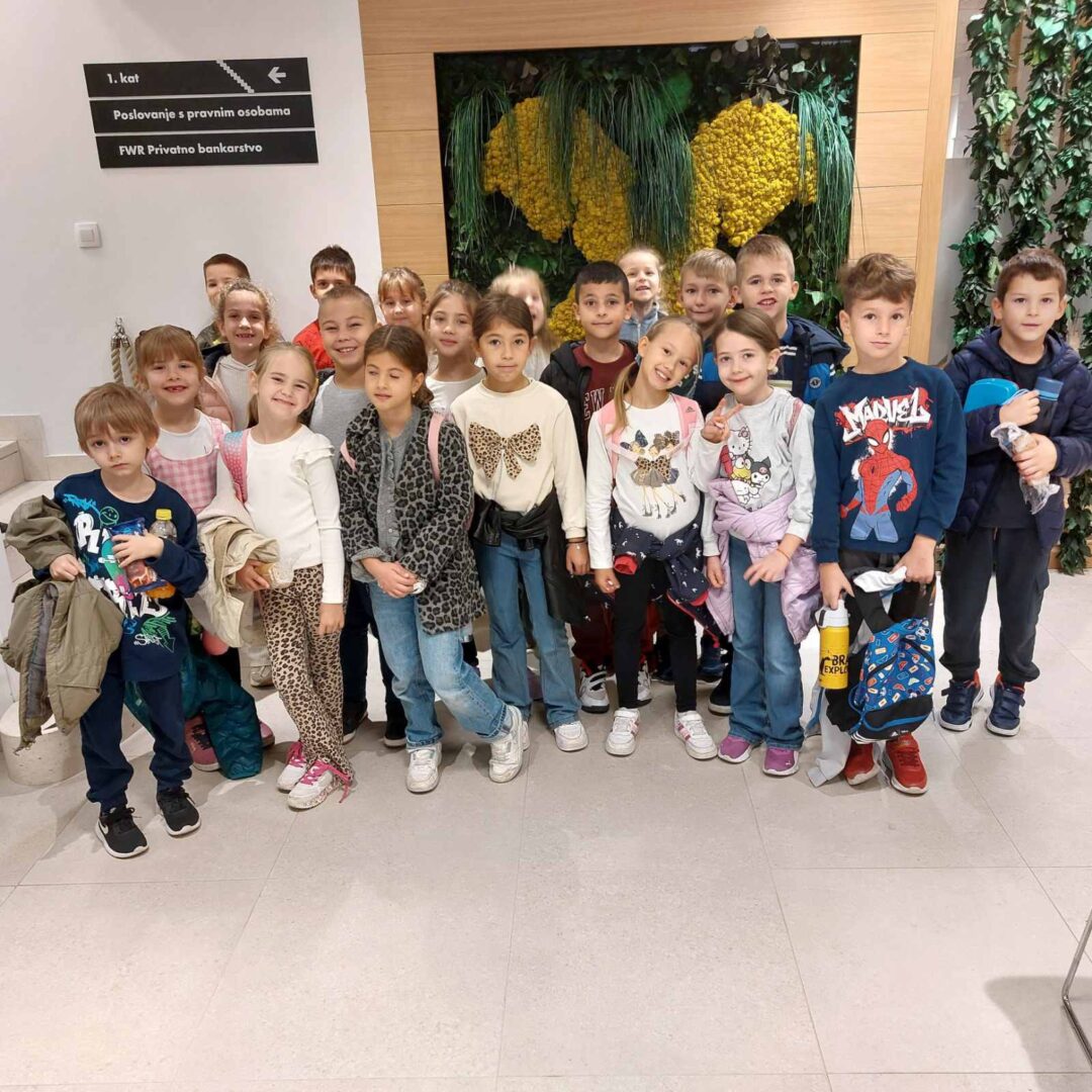 Naši su prvašići imali zanimljiv i poučan sat u Raiffeisen banci. Upoznali su se s načinom rada banke, naučili kako se podiže i isplaćuje novac na bankomatu te kako izgleda postupak brojanja novčanica. Vodstvo ih je provelo i kroz poseban prostor u kojem se čuvaju dragocjene stvari – prava mala avantura. Nakon edukativnog dijela, učenici su se zasladili bombonima i puni dojmova vratili u školu. Zahvaljujemo djelatnicima banke na srdačnom gostoprimstvu i zanimljivom obilasku!